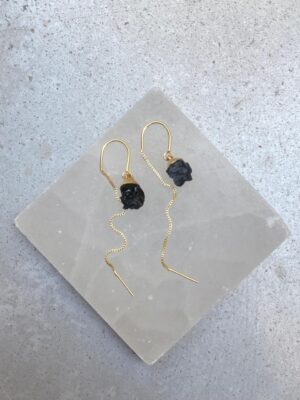 Brinco Fio Turmalina Negra Dourado