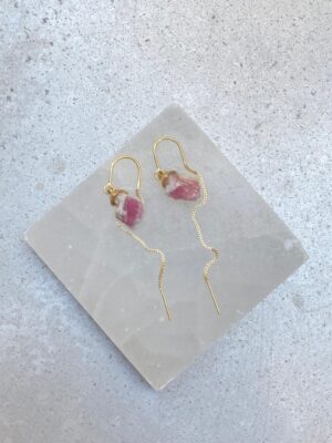 Brinco Fio Turmalina Rosa Dourado