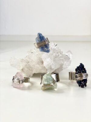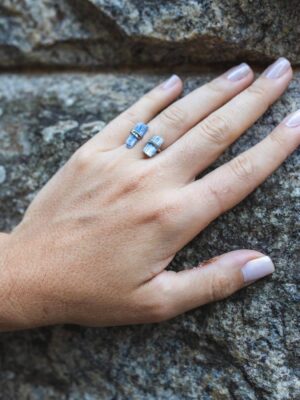 Anel regulável com banho de níquel no modelo stone moldurando a pedra bruta.