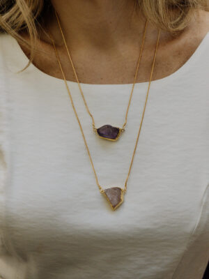 Em até 3x de R$ 29,67 sem juros Escapulário Ametista com Quartzo Rosa Dourado