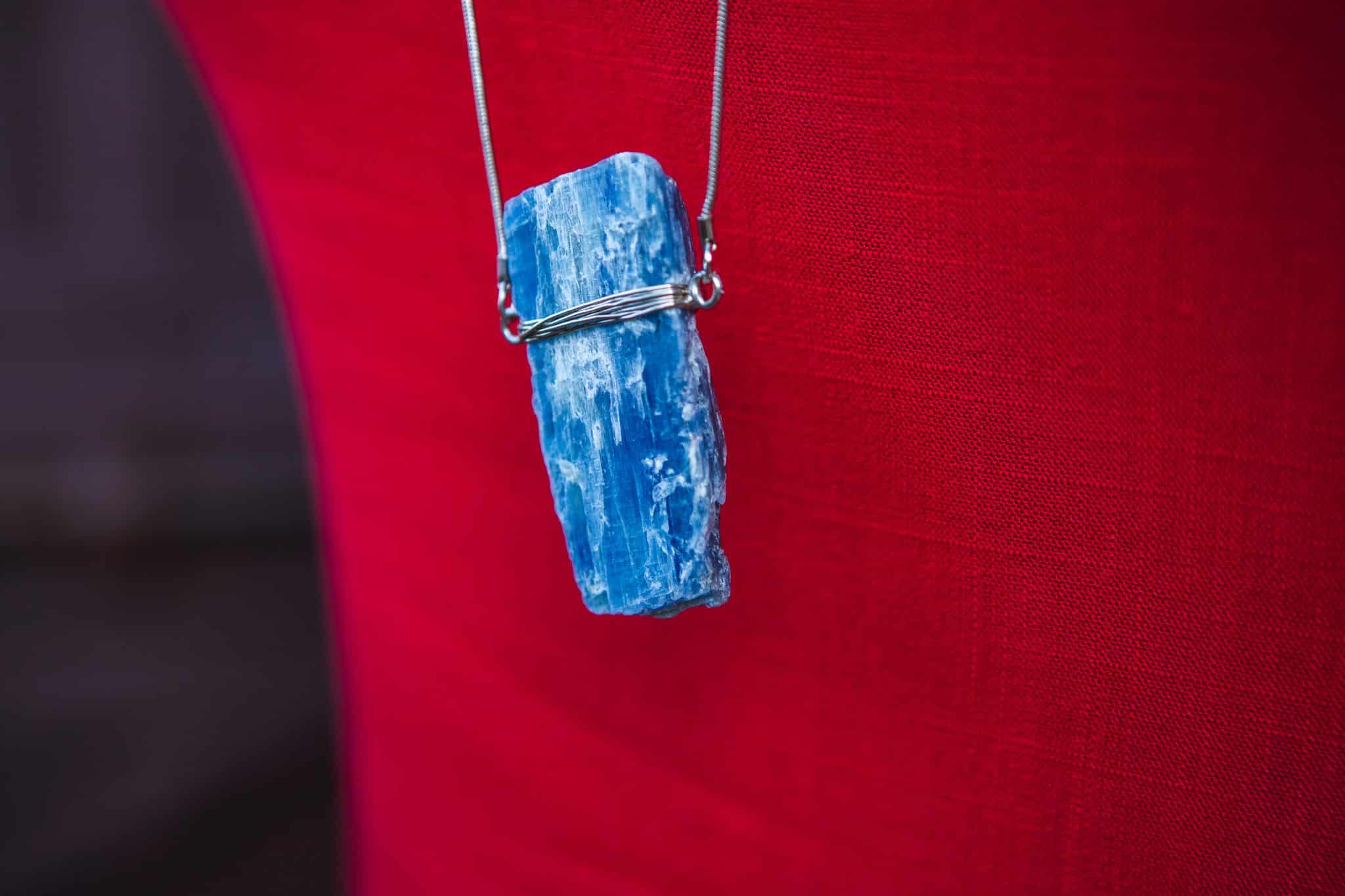 Colar Bruto Cianita Azul Prateado
