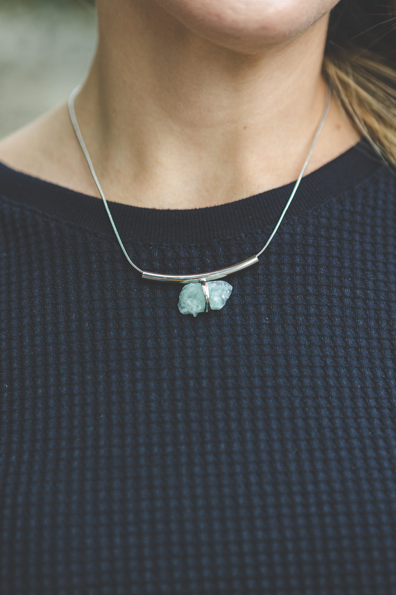 Colar curto modelo Andina com tubo de 5cm com pedra bruta amarrada passando a corrente rabo de rato, super leve e muito delicado. Ótimo para fazer composição com outro colar mais longo.