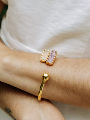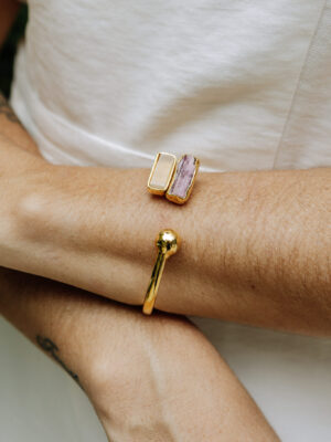 Em até 3x de R$ 99,67 sem juros Pulseira Saber Selenita com Rubelita Dourado