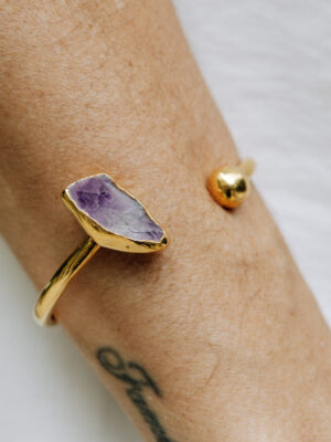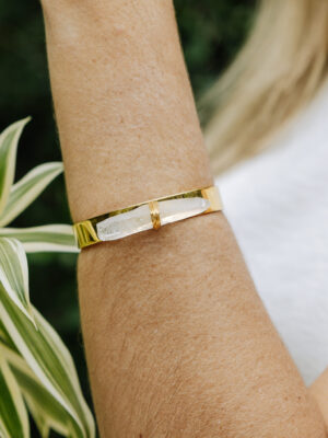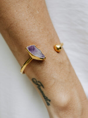 Pulseira aro ondulado banhado a ouro 18k e envernizado com 3 pingentes ( turmalina, olho grego e cianita azul ) que podem ser removidos