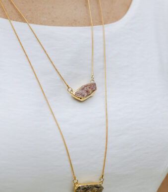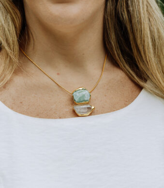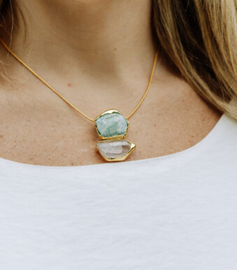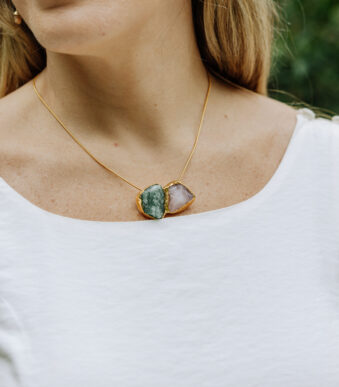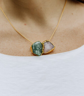 Escapulário Básico Quartzo Verde + Quartzo Rosa Prateado
